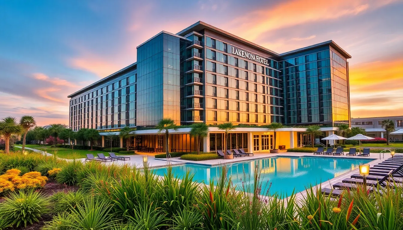 Architectural details make the hotel a visual landmark in Lake Nona. The sleek lines and glass facades create a stunning entrance. Unique landscaping complements the exterior, showcasing colorful native plants. Sunsets reflect beautifully off the hotel’s surface, providing picture-perfect moments for guests. Visitors often admire the pool area’s contemporary look, paired with lounge spaces that invite relaxation. Guests capture these picturesque elements to remember their stay at the hotel.